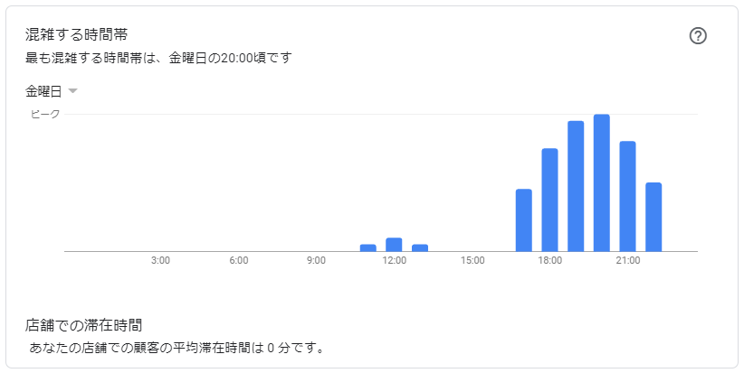 曜日ごとに混雑する時間帯と平均滞在時間を確認することができます。