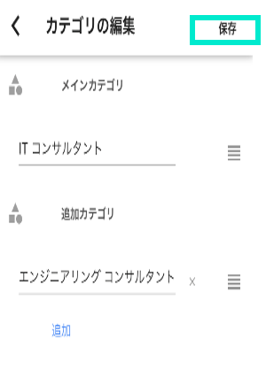 4.カテゴリ編集画面になるので、追加カテゴリをビジネスに近いものを入力します。こちらも選択方式です。